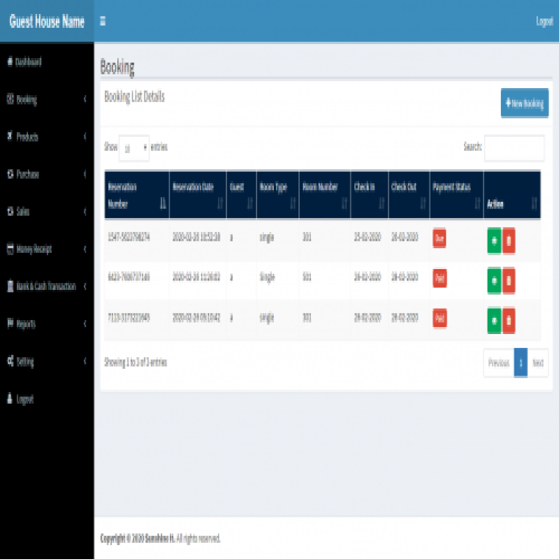 > Daily room booking history